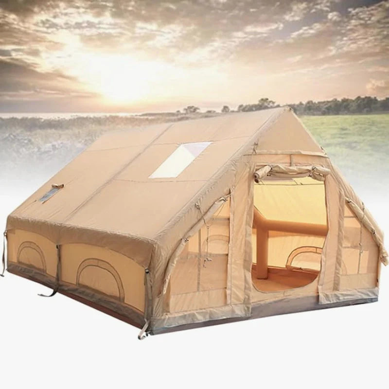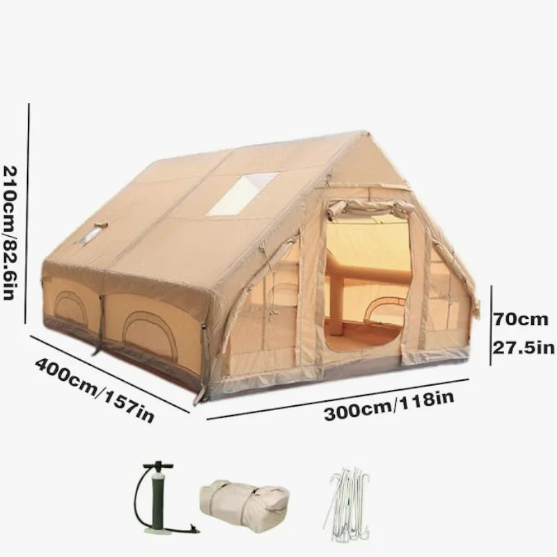 Disponible en deux tailles (6,3 m² ou 12 m²), cette tente de camping gonflable offre assez de place pour caser matelas, sacs de couchage, et même le chien si tu veux. Conçue en tissu Oxford 420D, elle protège de la pluie, du vent et garde la chaleur quand la nuit tombe. Facile à transporter dans son sac, elle suit sans broncher tes virées en montagne, tes week-ends à la plage ou tes soirées jardin. Bref, c’est le barnum gonflable pensé pour les campeurs qui aiment quand ça va vite et que ça tient la route.