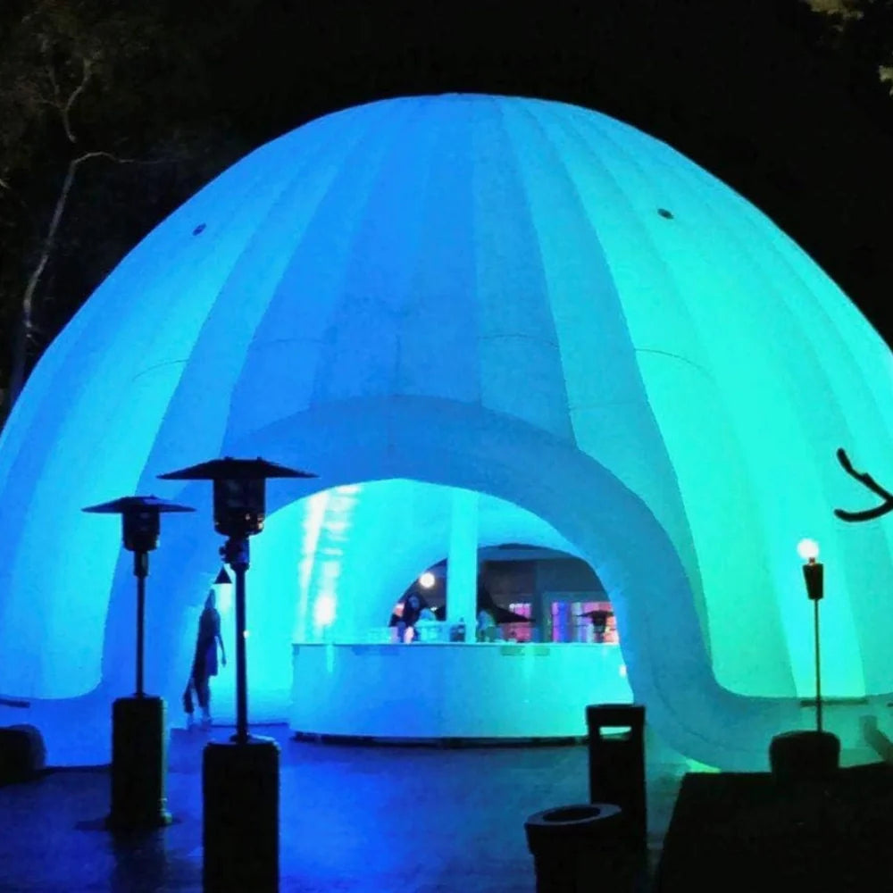 Disponible en deux tailles massives (jusqu’à 9,10 m de long), ce dôme gonflable accueille sans souci une foule de convives. Sa structure robuste et son étanchéité en font un abri sûr, que ce soit au bord d’une piscine, sur une terrasse ou en plein champ. Et si tu veux ajouter un peu de magie, les LED multicolores optionnelles transforment ton chapiteau en vraie boîte de nuit. Bref, c’est le chapiteau gonflable parfait pour créer un espace unique, pratique et spectaculaire.