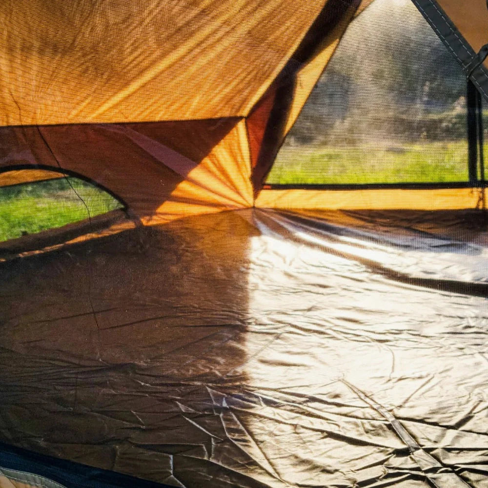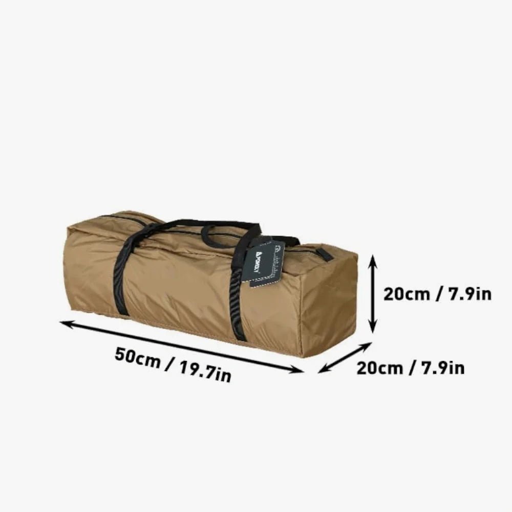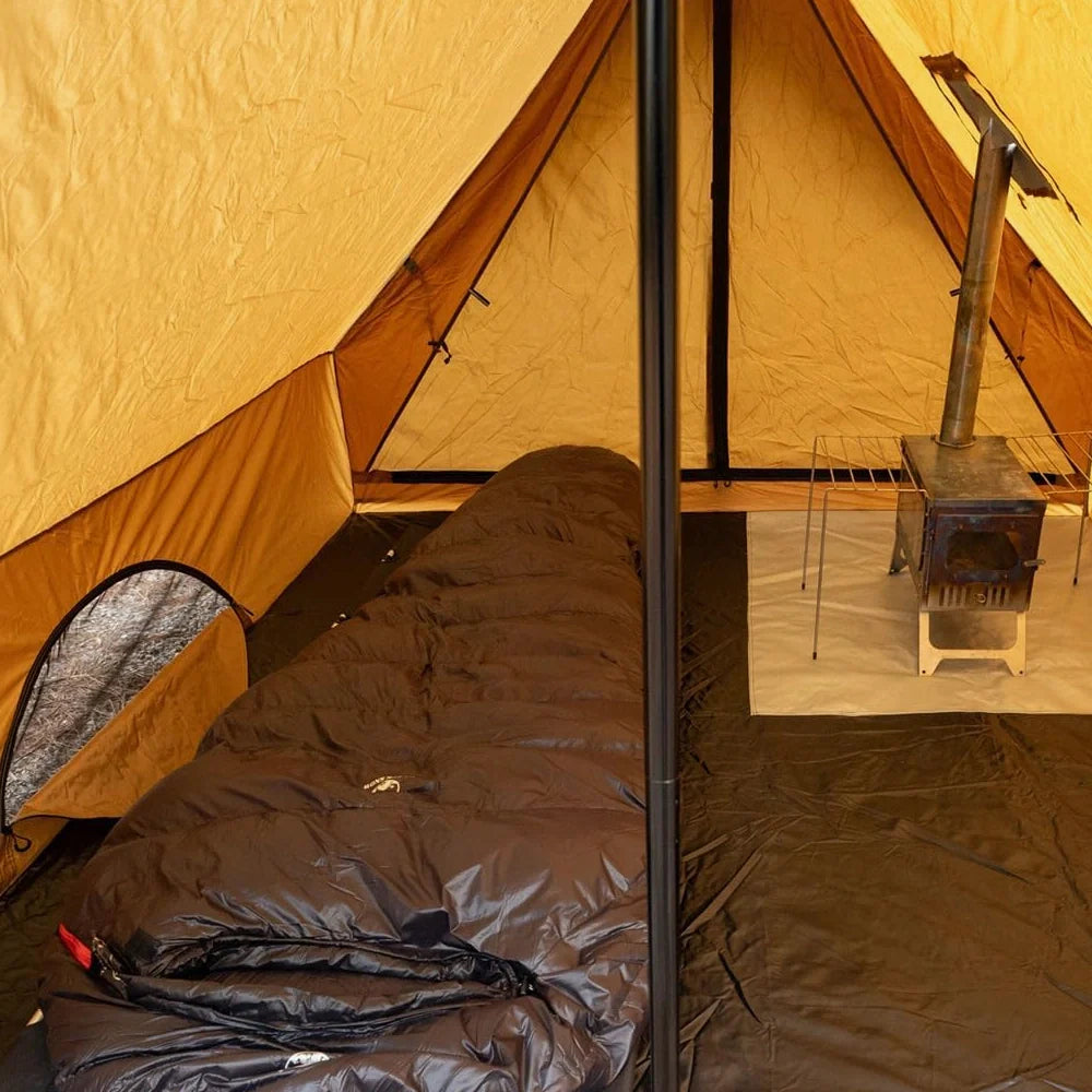 Ses deux portes opposées facilitent l’aération et la circulation, et les rideaux de pluie empêchent l’eau de venir gâcher ta sieste. Les poteaux en aluminium 7001 tiennent tête au vent, et le sol ignifugé protège contre les étincelles. Idéale pour le camping hivernal, les sorties bushcraft ou les aventures nordiques, cette tente promet de te garder au sec, au chaud et dans ton élément. Le feu crépite, le vent souffle dehors… et toi, t’es bien.