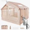 La tente gonflable de camping simplifie la vie : tu poses, tu gonfles, et c’est plié. Pas de prise de tête avec des arceaux qui font la grève. Son Oxford 420D tient la pluie, le vent et les UV, les écrans en maille laissent passer l’air sans les moustiques — merci bien. Avec l’ouverture cheminée, tu peux utiliser un poêle en toute sagesse, sans transformer l’abri en hammam. Idéale pour rando, festival ou week-end au bord du lac ⛺🔥.